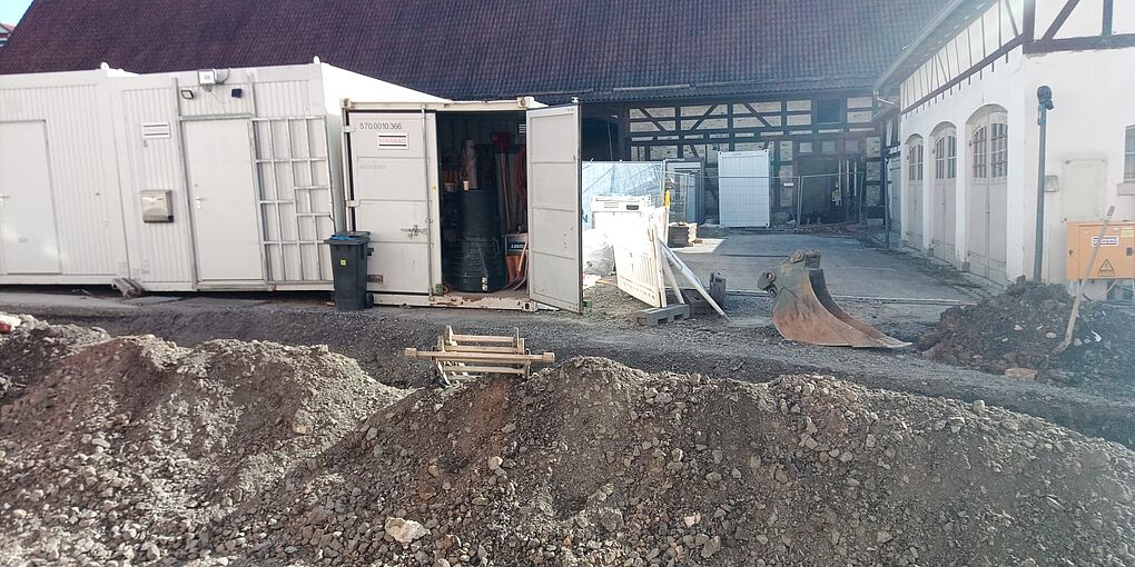 Im Außenbereich der Markthalle sowie in der Straße wird derzeit ziemlich viel „Erde“ bewegt.
