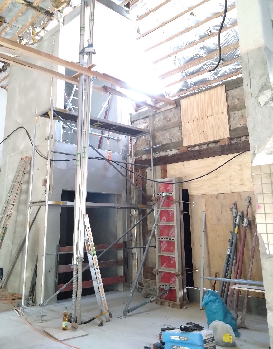 Schritt für Schritt geht es weiter. Hier gut zu erkennen, die Entstehung des neuen Aufzuges.