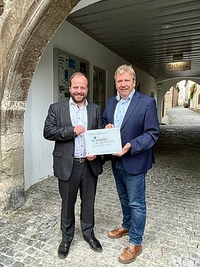 Aufgrund des erfolgreichen Projektabschlusses überreichte Jürgen Eisentraut, der Leiter des Amtes für Ländliche Entwicklung Unterfrankens, jüngst dem Bürgermeister Malzer eine Plakette mit dem Titel „Smarte Gemeinde“.