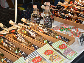 Die Vielfalt der regionalen Produkte können sich auf jeden Fall sehen lassen: Neben frischem Fisch, Brot und Brötchen gibt es Wild- und Rindswurst, Schinken und Hygieneprodukte wie Beef-Tallow und Schafmilchseifen. Natürlich kann man sich ebenso mit Elixieren und edlen Bränden, Eiern und Nudeln versorgen. Kartoffeln, Zwiebeln und Zwetschgen wird es – entsprechend der Jahreszeit – wohl ebenso geben. Der Forellenhof Siepermann bietet im April und September Fischweck von der Rhönforelle an und an allen anderen Markttagen gibt es leckere Rostbrätchen vom Grill von Familie Melz.