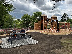 Der Bauhof hat alle Arbeiten rund um das neue Spielgerät auf dem Spielplatz „Am Rauhen Stein“ erfolgreich abgeschlossen. Die Maßnahmen umfassten die Erdarbeiten, den Aufbau des Spielgerätes sowie das Pflastern und die Aufstellung einer Sitzgelegenheit.